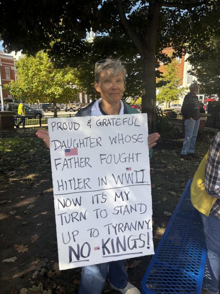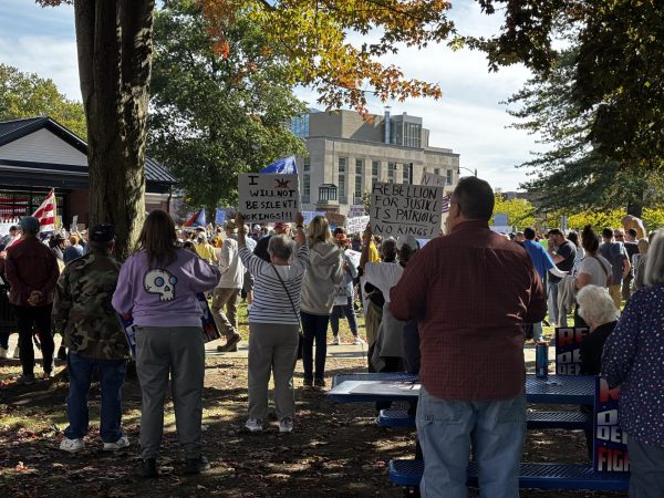 Taken during the opening speech, attendees held up their signs as a show of support. One reading, “Rebellion for justice is patriotic.” No kings!” (Bailey Clements)